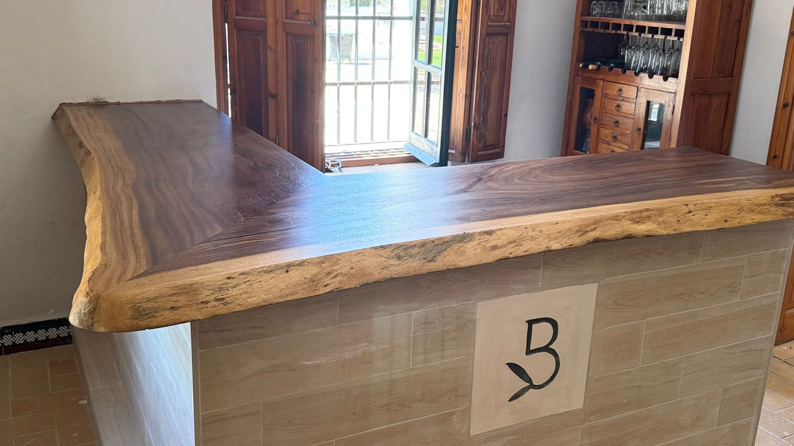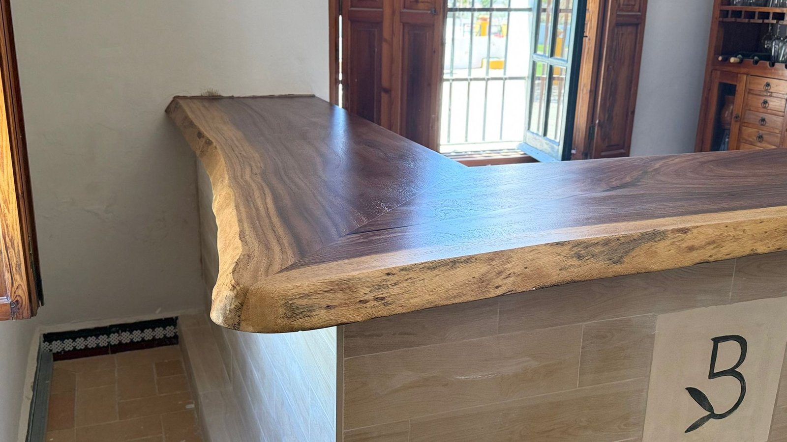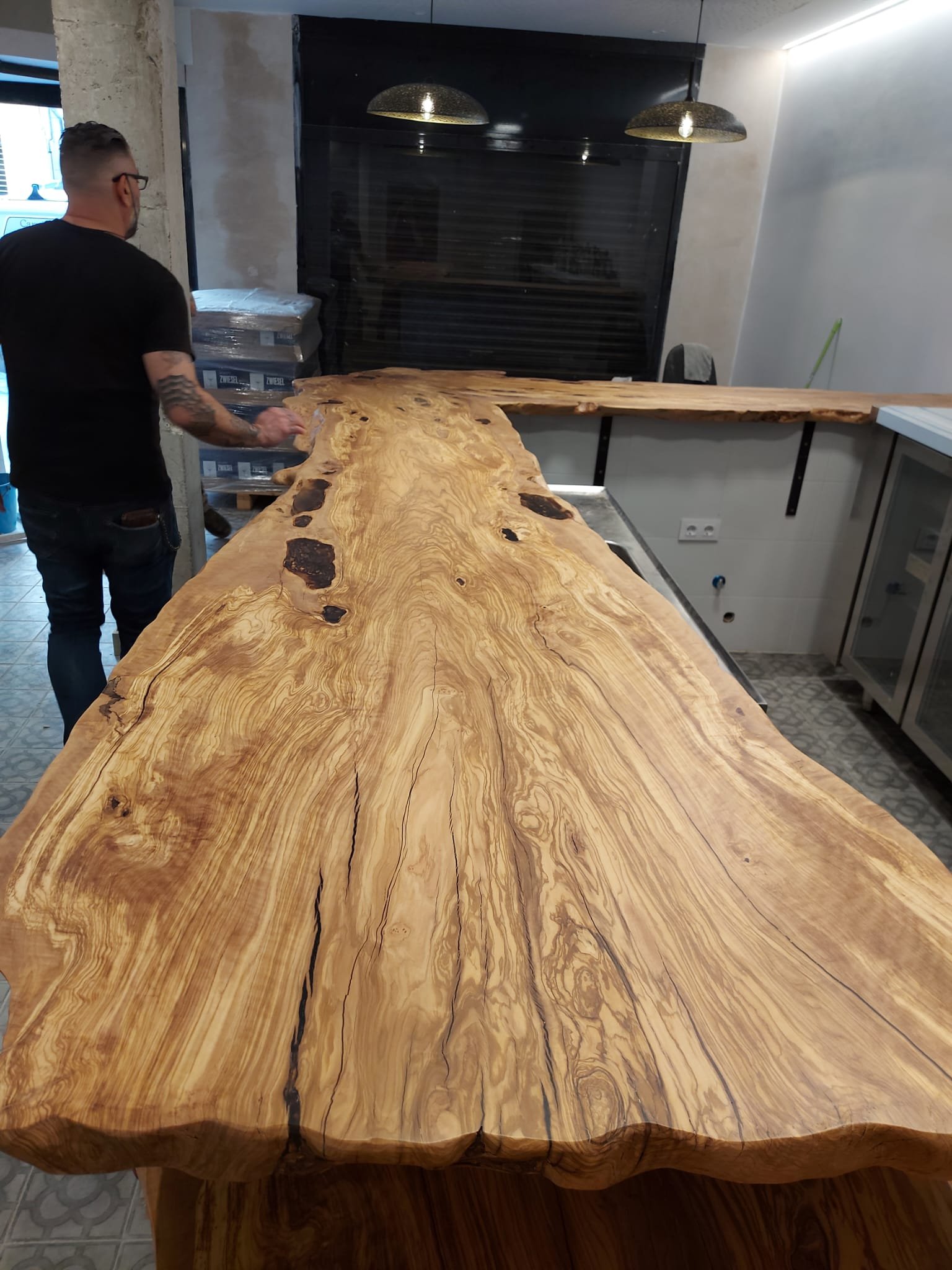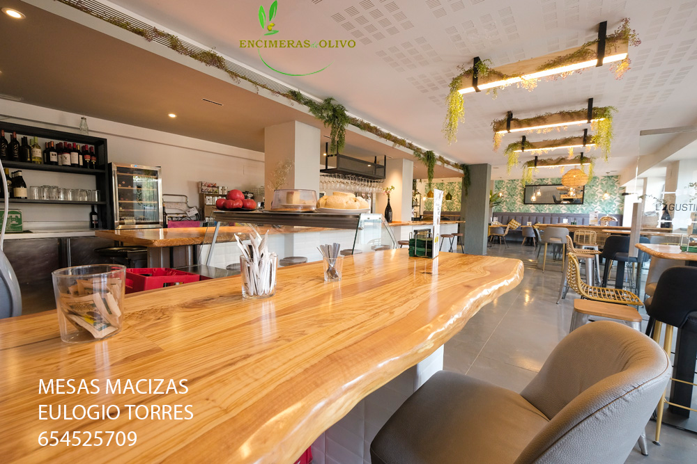 Encimera de madera de Olivo para restauración.