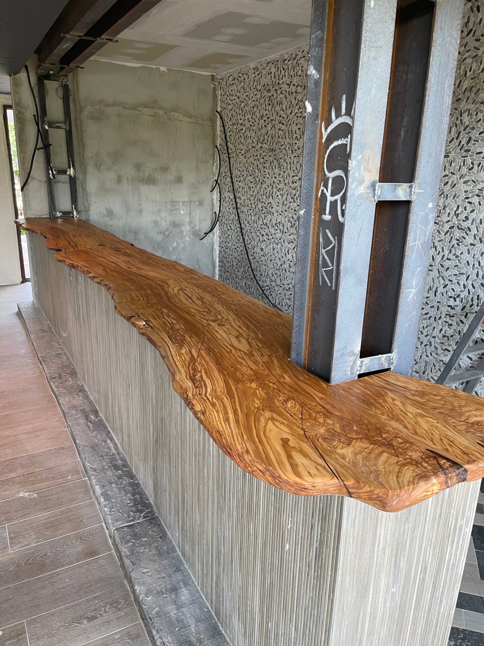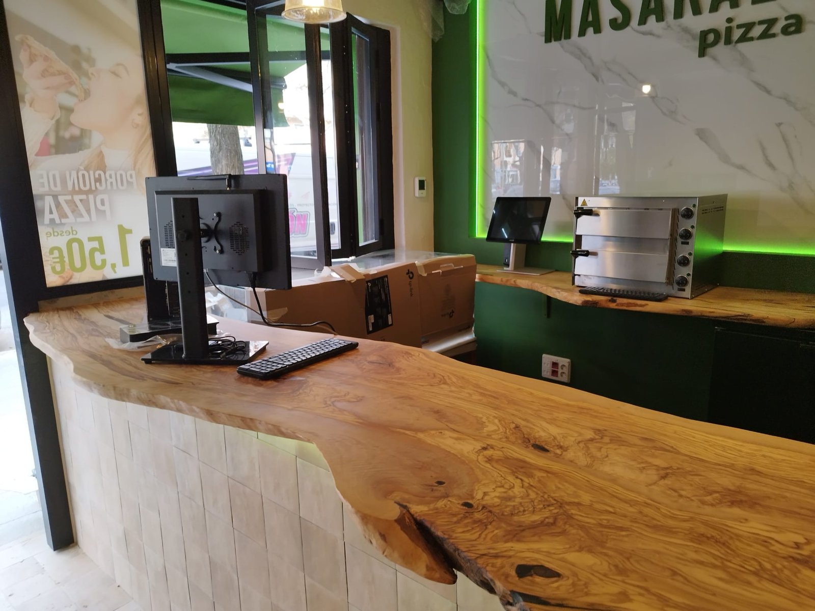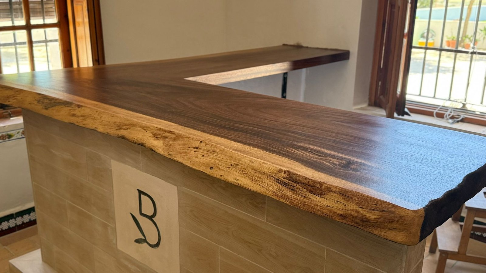 Encimera de madera de Olivo para restauración.