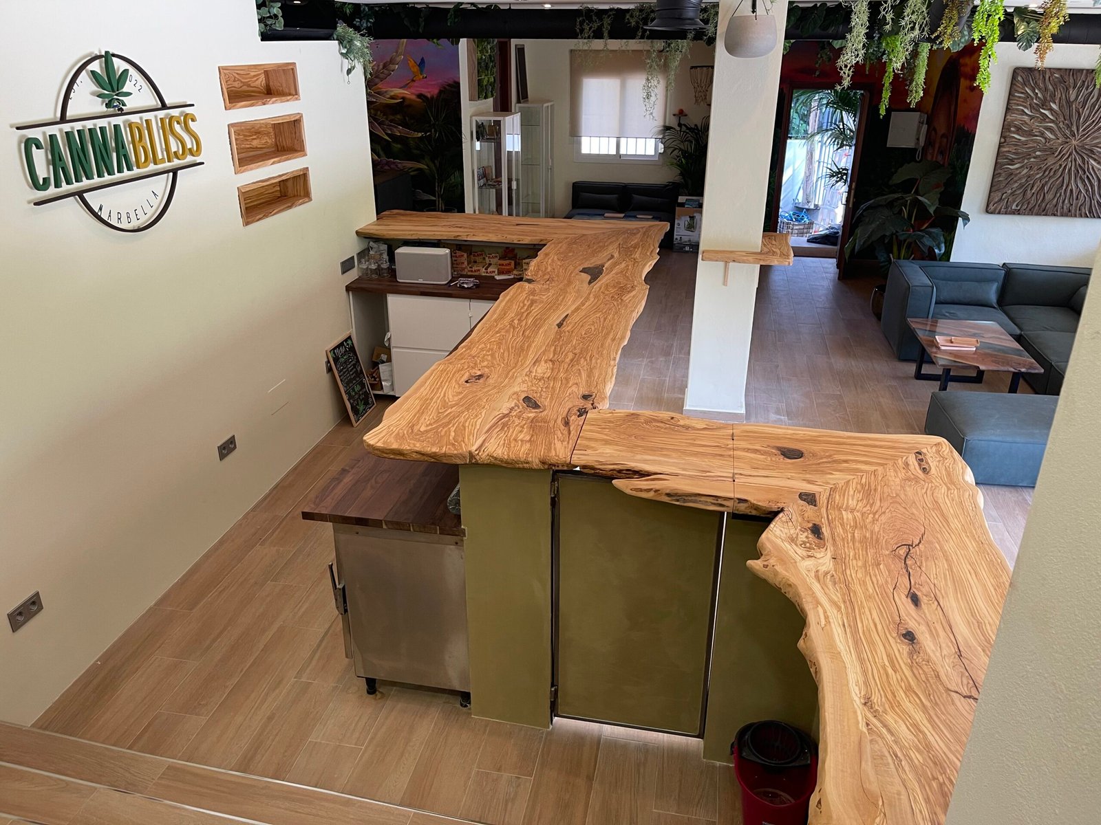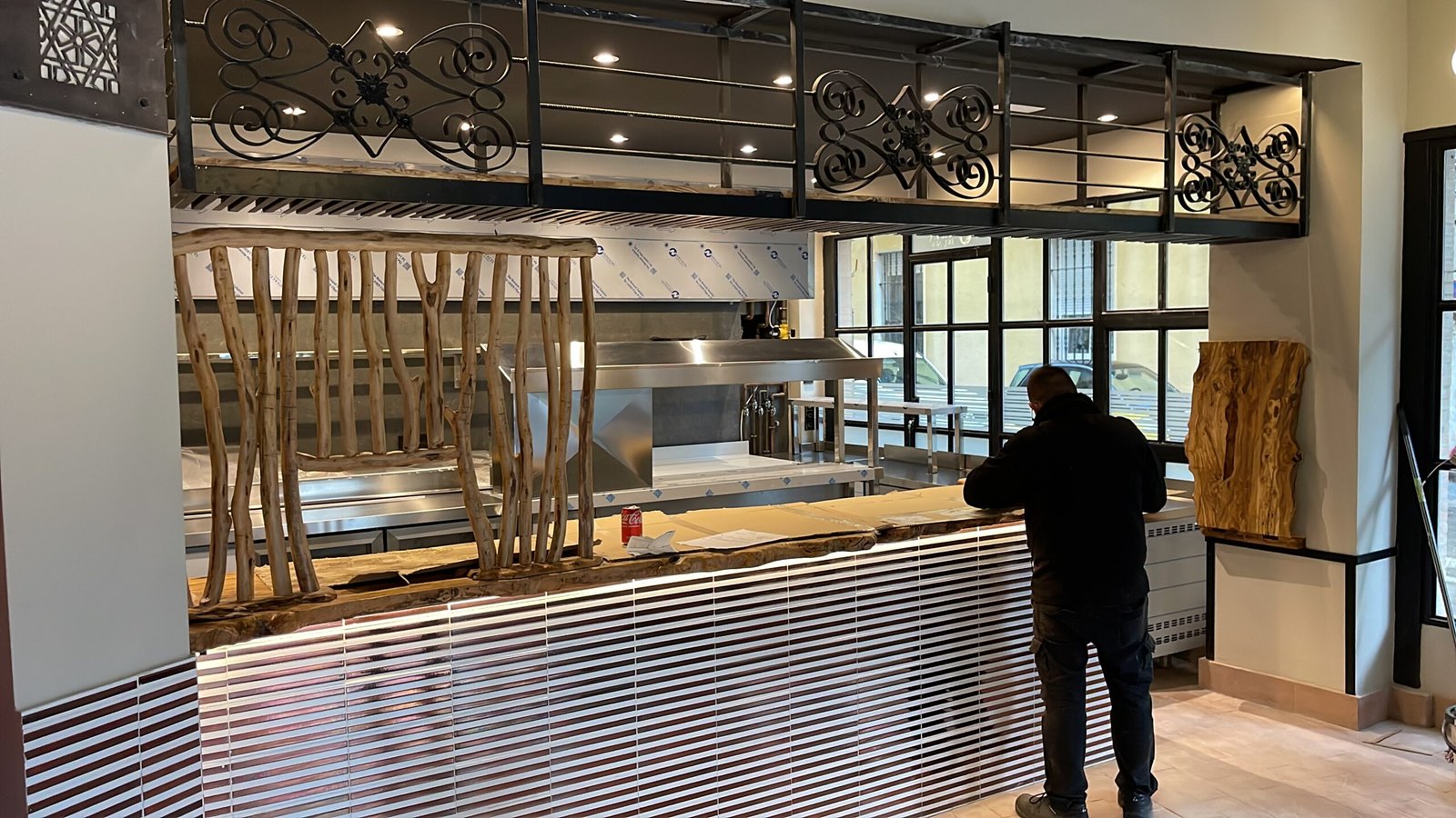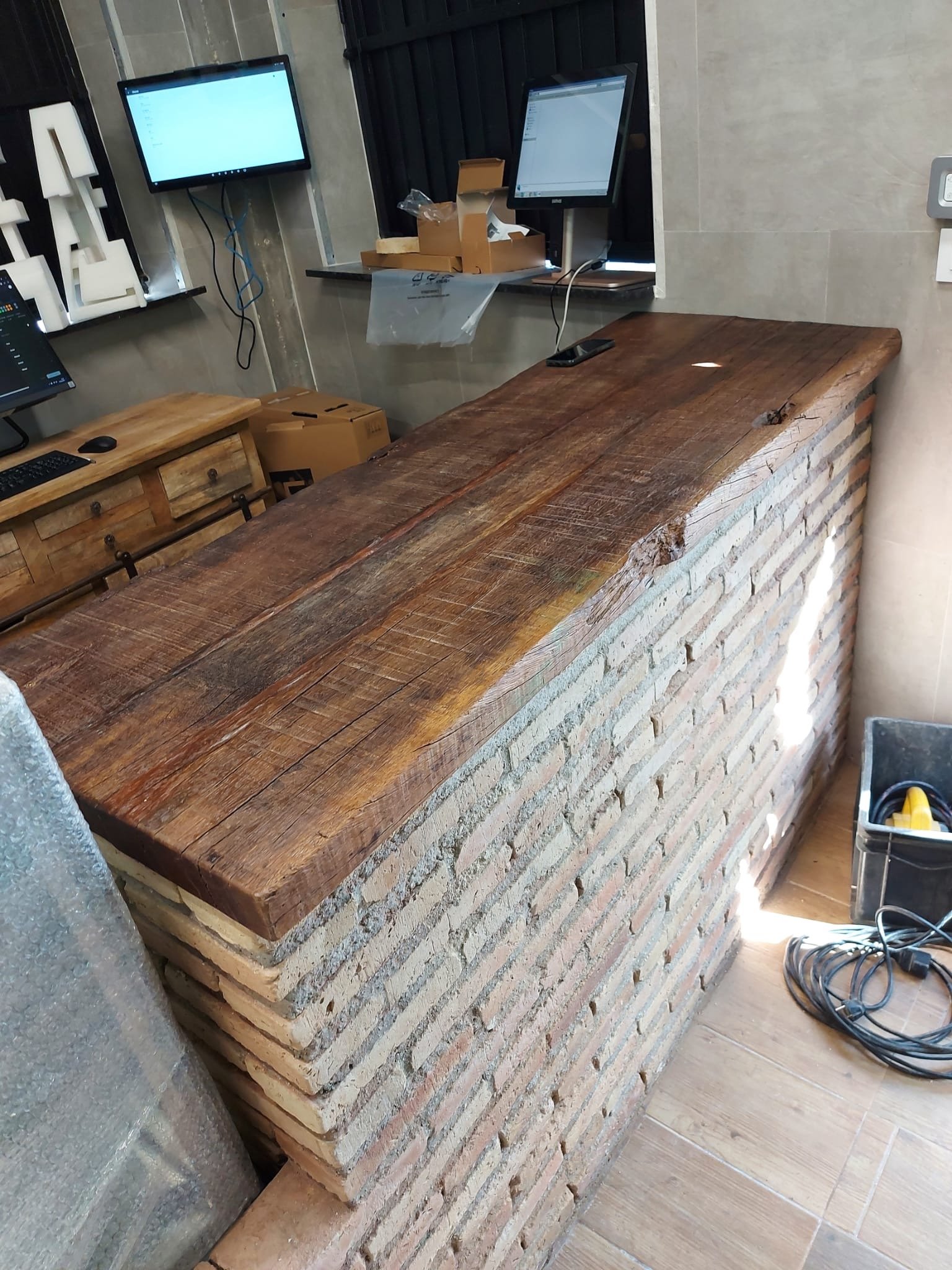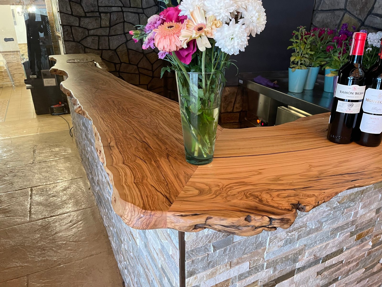 Encimera de madera de Olivo para restauración.